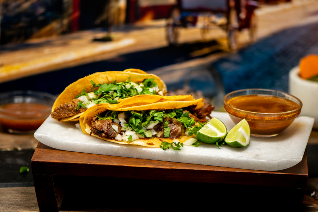 Our tacos are served on a 6-inch tortilla with your choice of meat along with guacamole and Mexican salsa. A simple, classic option that works well on its own or as part of a meal.